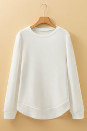 White Rounded Hem Waffle Long Sleeve Top