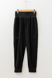 Black Elastic High Waist Pocketed Cargo Jogger Pants